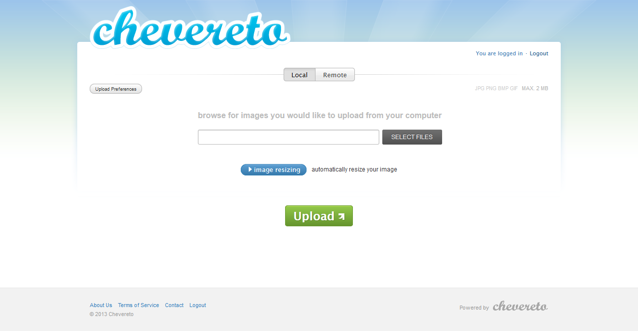 Chevereto is an image hosting script that allows you to create a beautiful and full featured image hosting website in your own server. It's your hosting and your rules, say goodbye to closures and restrictions. Chevereto.com