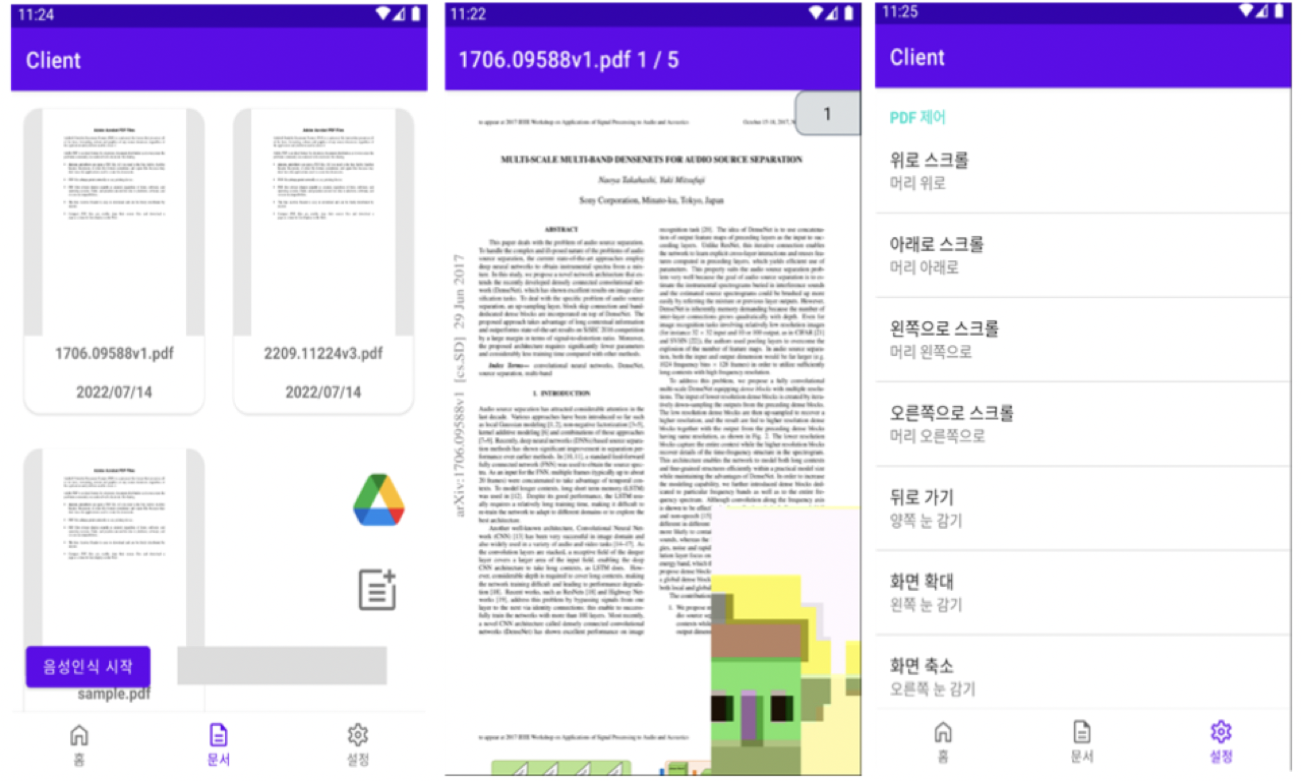 손을 사용할 수 없거나 어려운 상황에서 정보취약계층이 편리하게 PDF 문서 정보를 확인할 수 있도록 도움을 주는 안드로이드 기반의 어플리케이션.