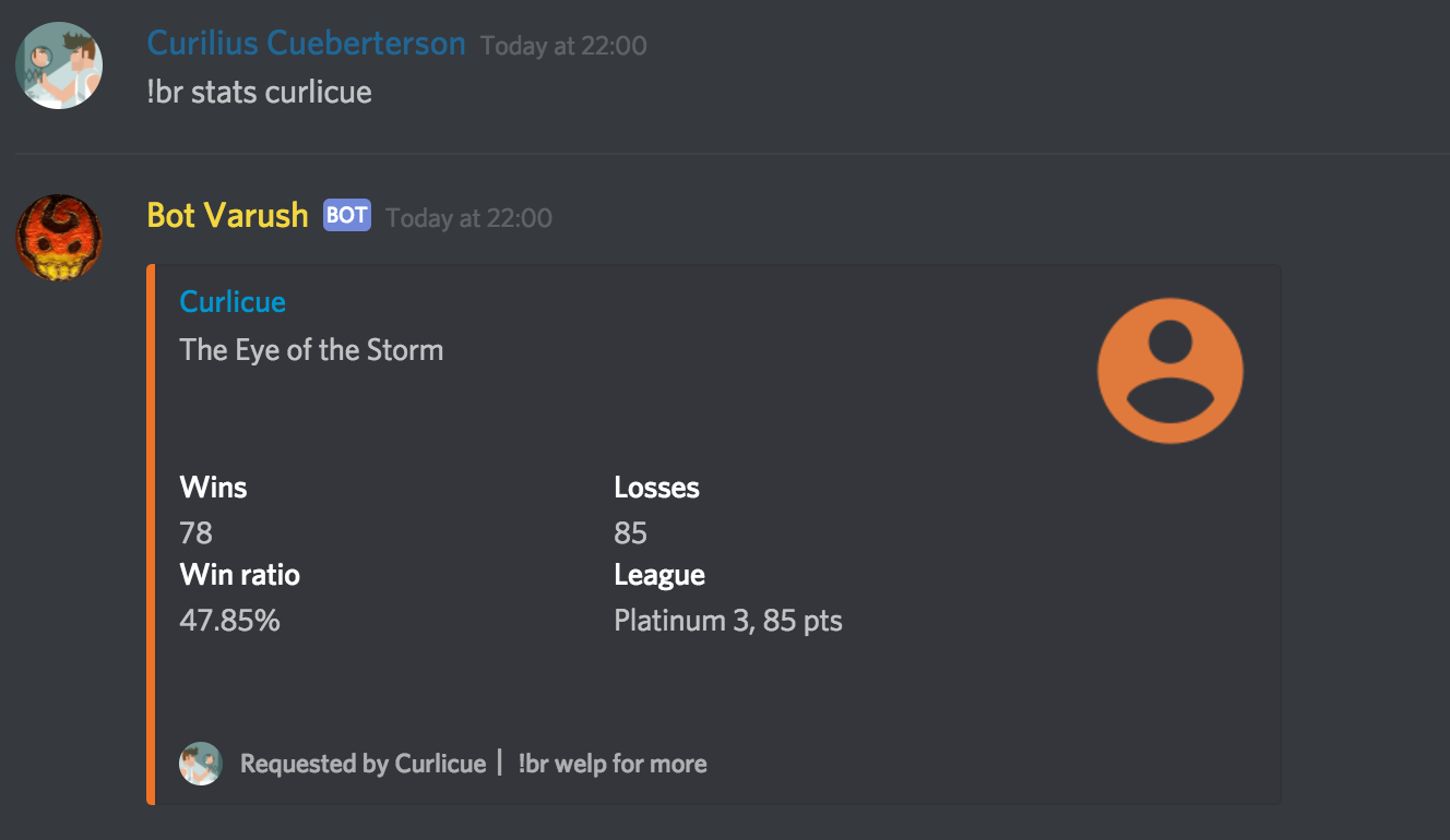 A Discord bot to display Battlerite player data and other cool things. Everyone is welcome to integrate it on their servers, or if you don't want to host it just ask me for the discord integration link!