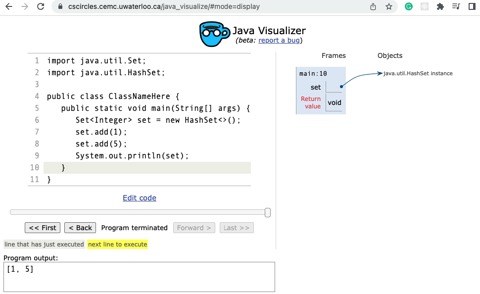 Java Visualizer Set support