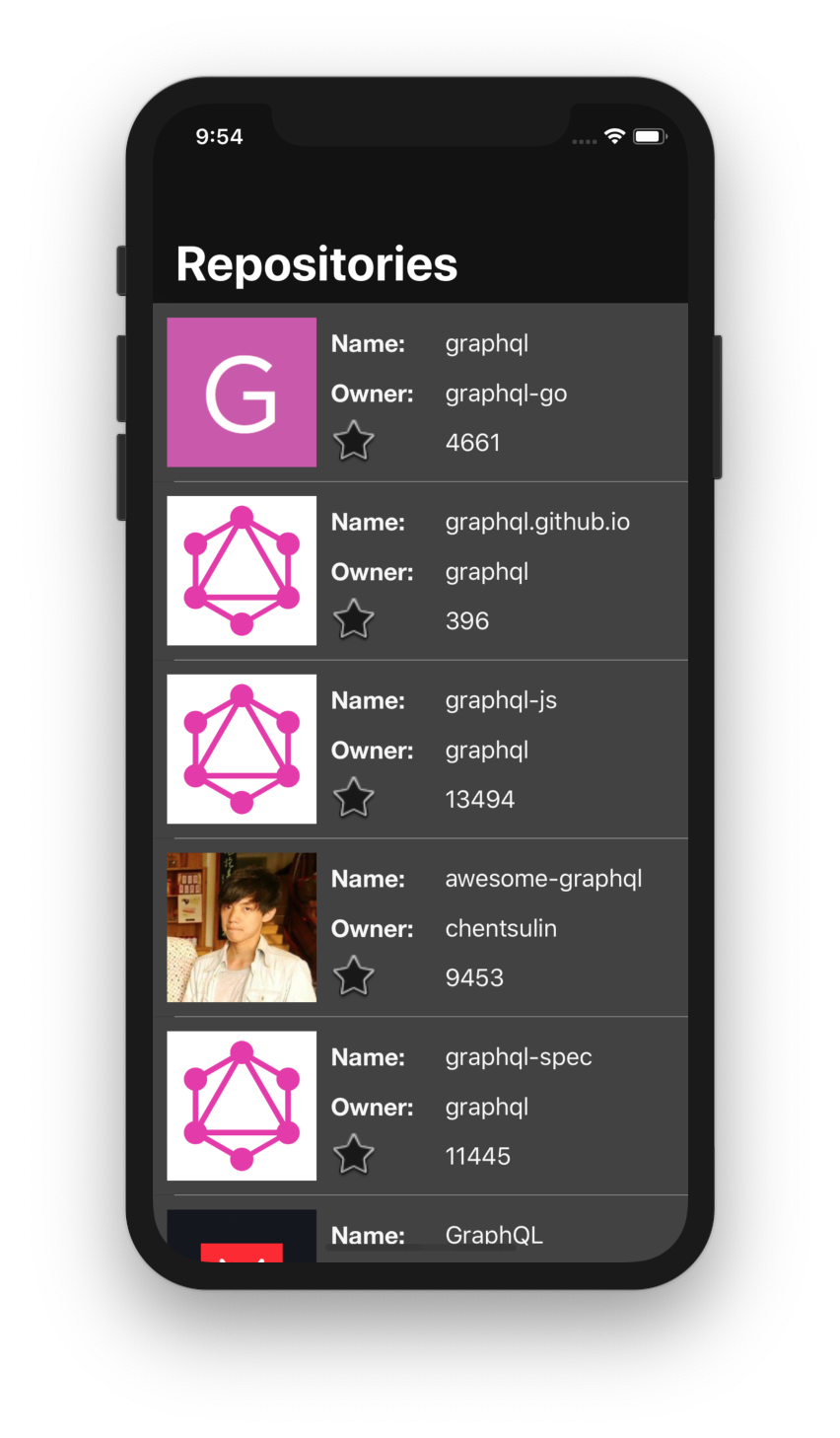 GitGraphQL is an iOS application that makes use of GitHub's GraphQL API to display a list of repositories.