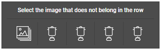 | Captcha Header | Select the icon that does not belong in the row. | JS |