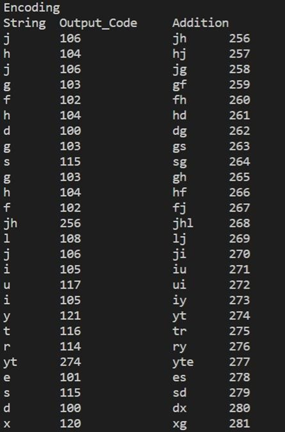 - Lempel-Ziv-Welch coding technique