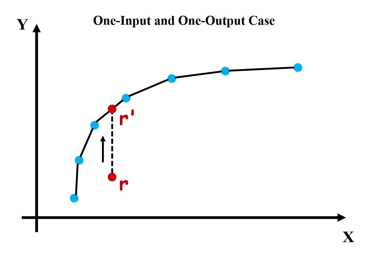 A production function stands for a production frontier which also represents a "maximum outputs" that can be achieved using input vector 𝕩. In addition, the data resource as must come from the same industry as possible because the different industry may have different resource consumption proportion and quantity of outputs for technique.