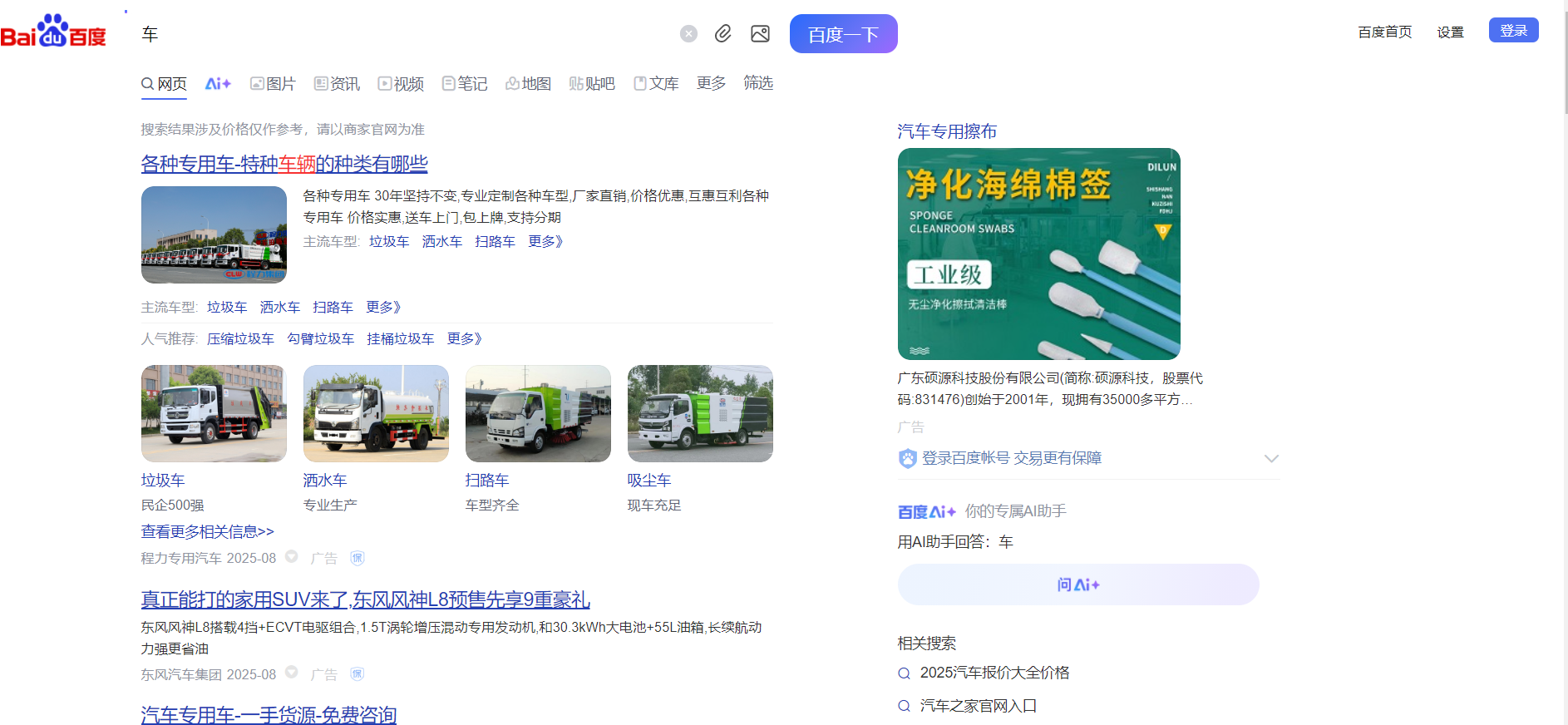 2、安装插件前的百度搜索结果页面,左右都有广告;