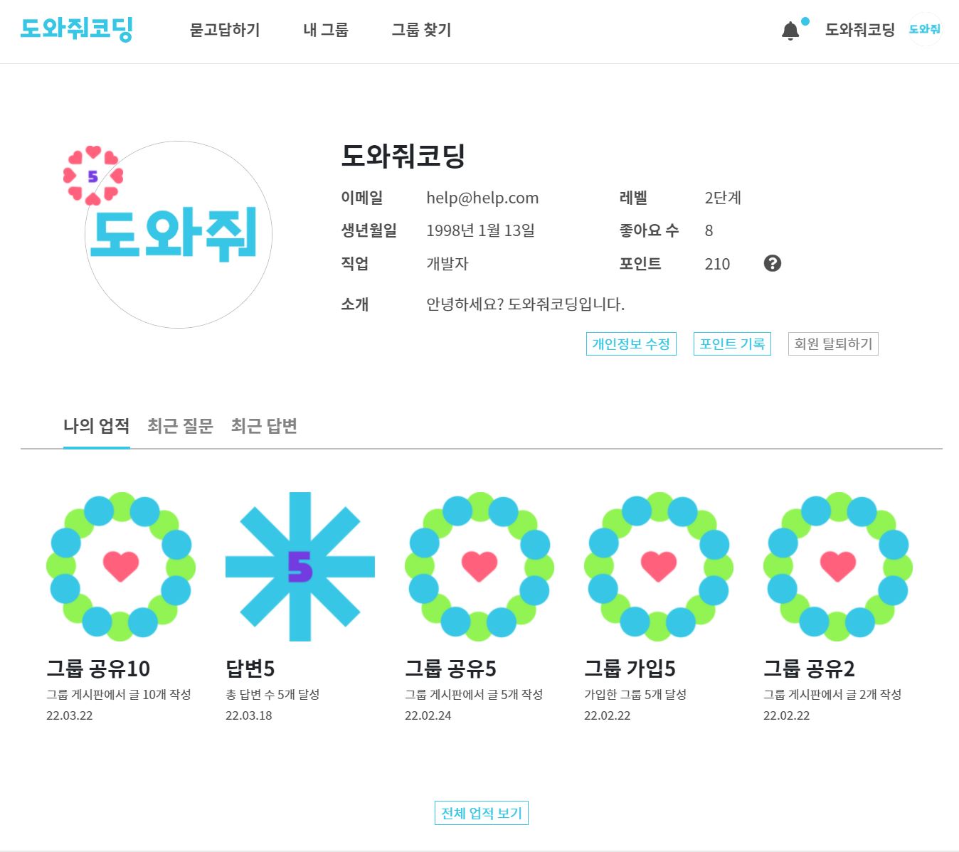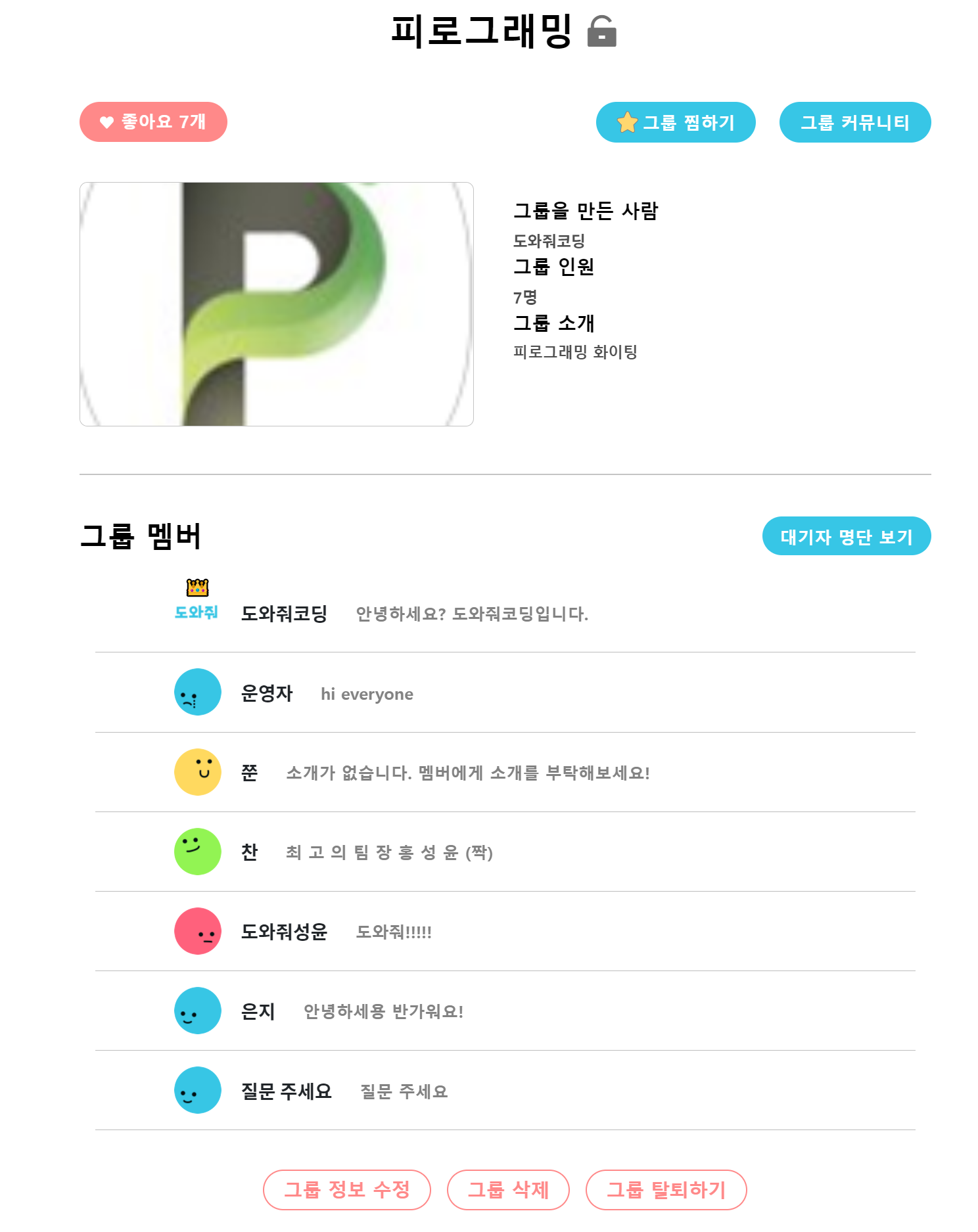 도와줘, 코딩의 그룹 기능을 통해 다양한 공개/비공개 그룹을 만들어보세요!