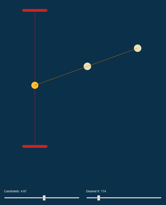 Intersects Environment A 2D Space 2 movable points, p1 and p2 A movable X line (where the line from p1 to p2 shall intersect) Movable Y constraints on that X line Question What is the point defined by the intersection between a line from points p1 and p2 and a desired X?