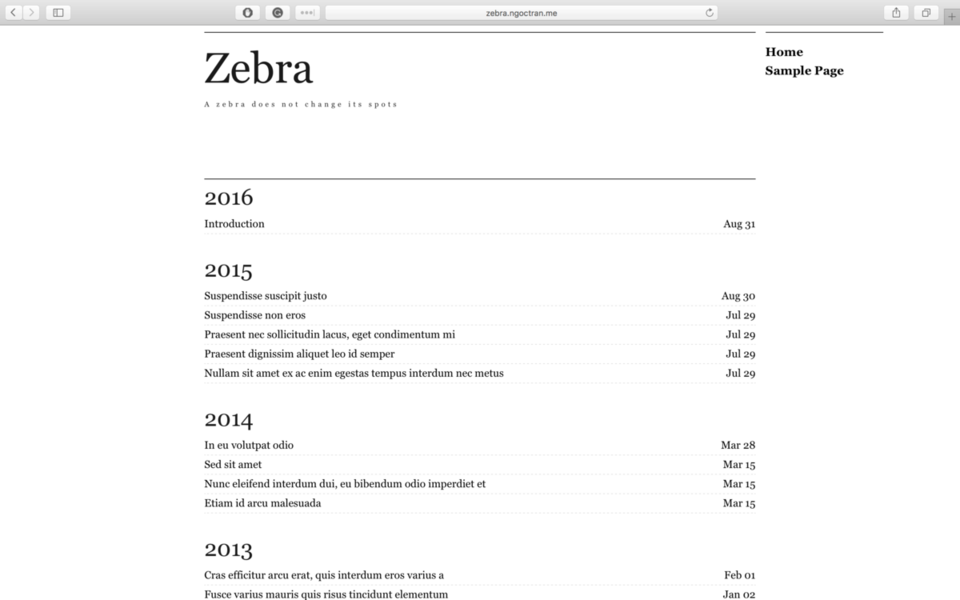 Zebra is a minimal Jekyll theme. The idea of Zebra mainly comes from https://www.subtraction.com/ of Khoi Vinh.