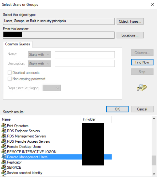 NT AUTHORITY\INTERACTIVE AccessAllowed, BUILTIN\Administrators AccessAllowed, BUILTIN\Remote Management Users AccessAllo