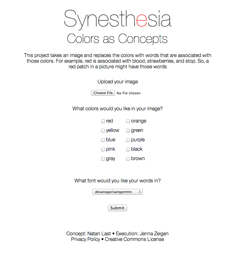 - The main attraction: Takes the image and makes its colors words. Works at the command line as well as through the web GUI powered by synserver.py