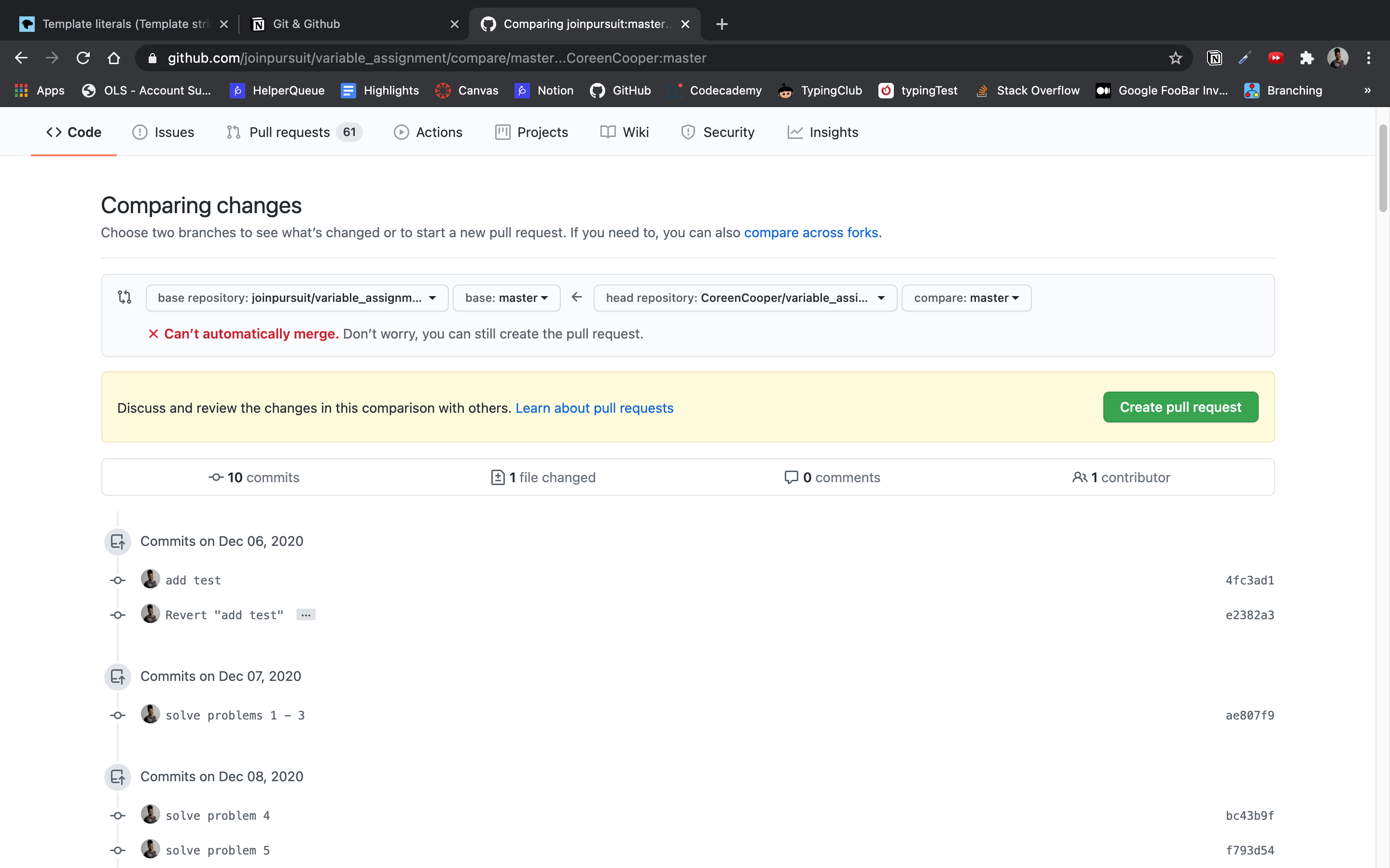 Is the warning: "X Can't automatically merge."normal? If not, do you have any idea what I did wrong?