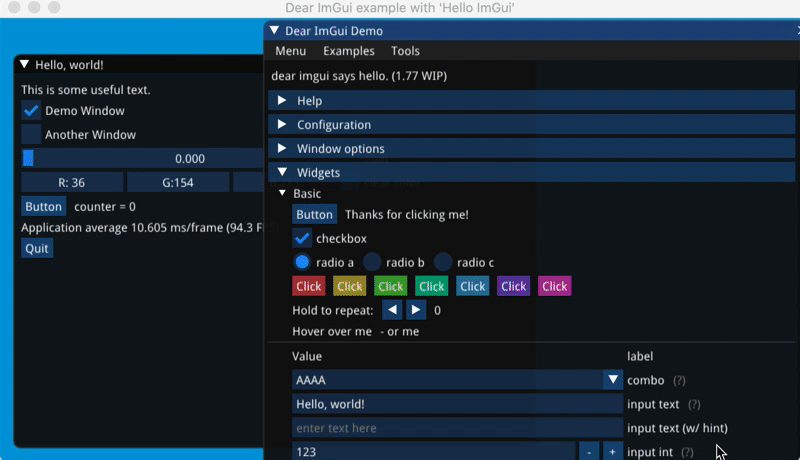 | Hello, World | Advanced Docking | Classic ImGui Demo |