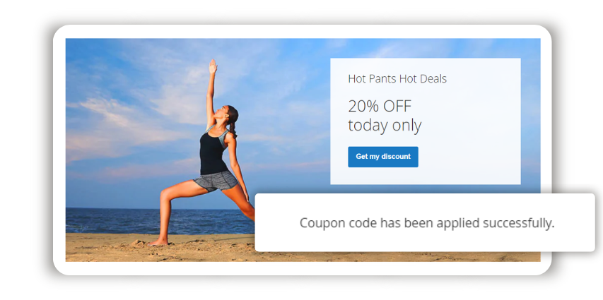 You can add coupon code links or widgets to your sales emails or newsletters to drive more customers. All they have to do is click a āGet my discountāā button and land on a shopping cart page with products and discounts already applied.