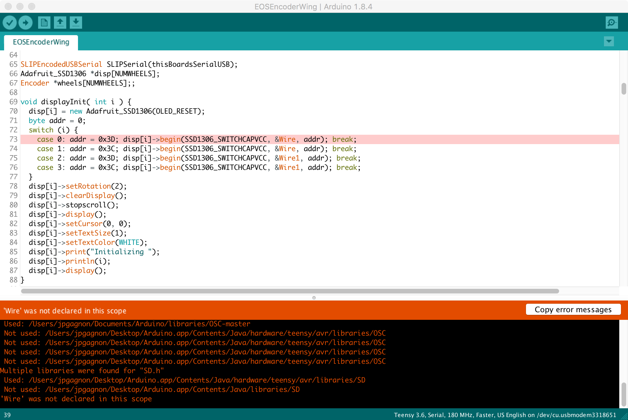 Matt, I now have a teensy 3.6, which is what you used. I am getting a "wire not defined in scope" error (see pic). Can't seem to figure this out.
