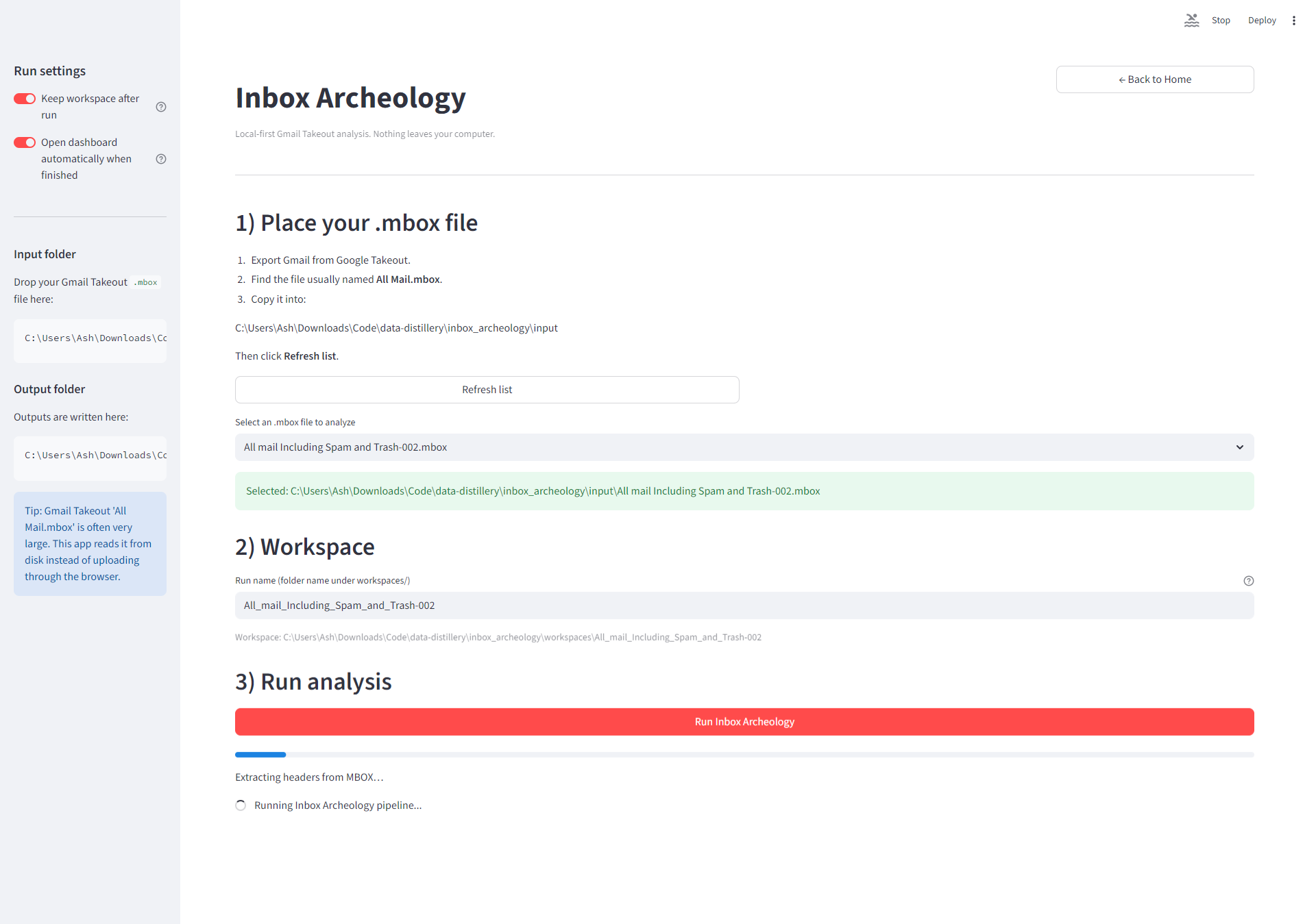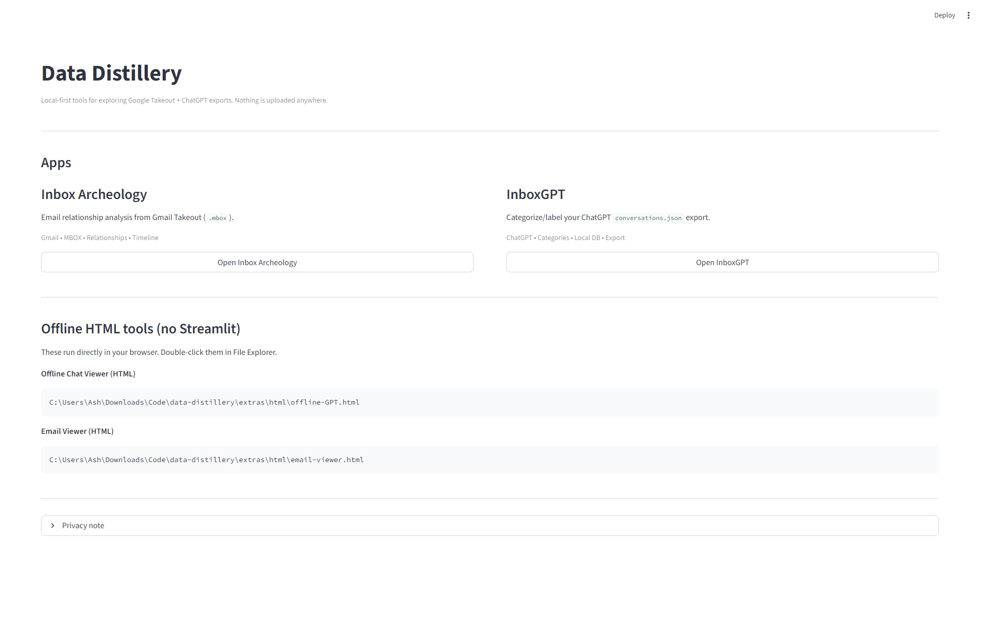 Data Distillery is a local-first suite of tools for turning large personal data exports