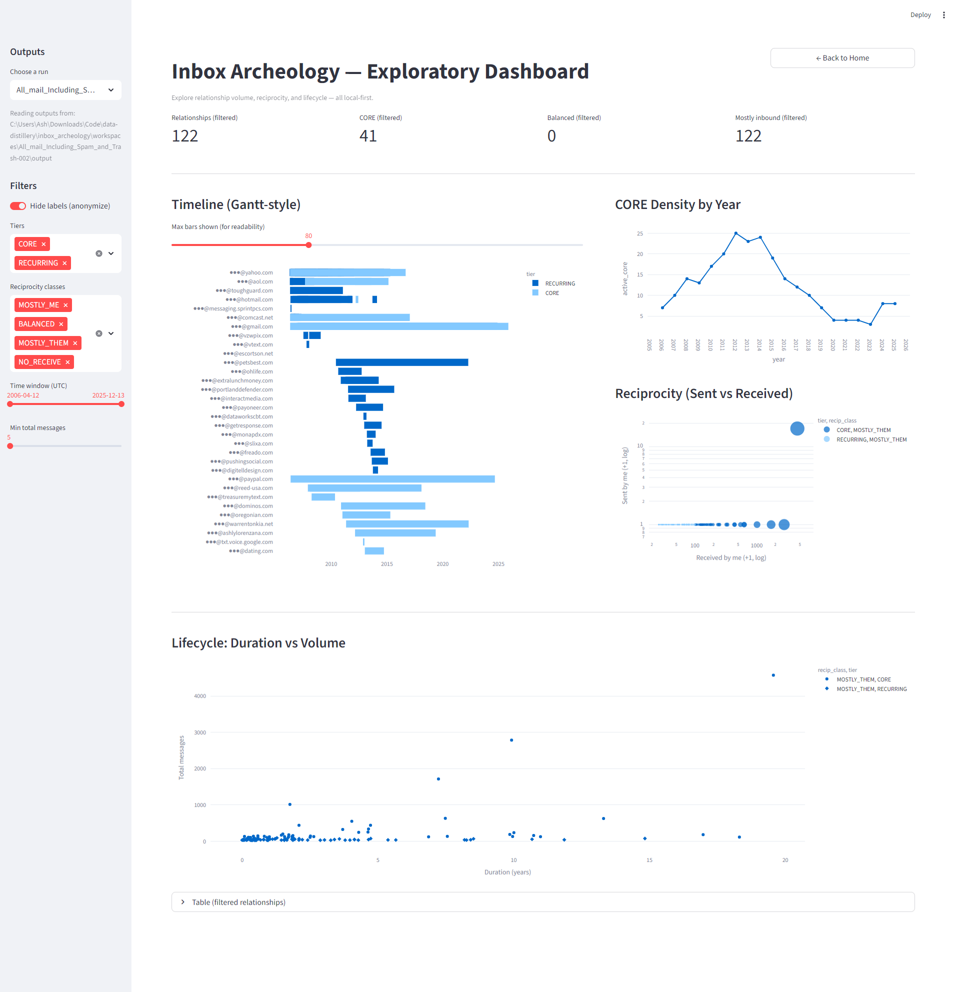 Analyze a Gmail Takeout `.mbox` file to explore:- long-term email relationships