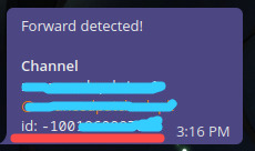 - Set up a telegram channel, send a message to it and forward the message to this telegram bot