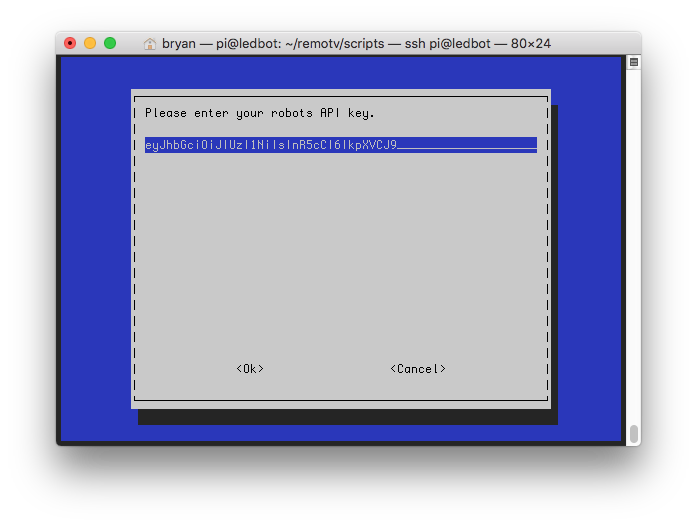 Enter your robots API key. You can get this by clicking on your robot in the channels list.