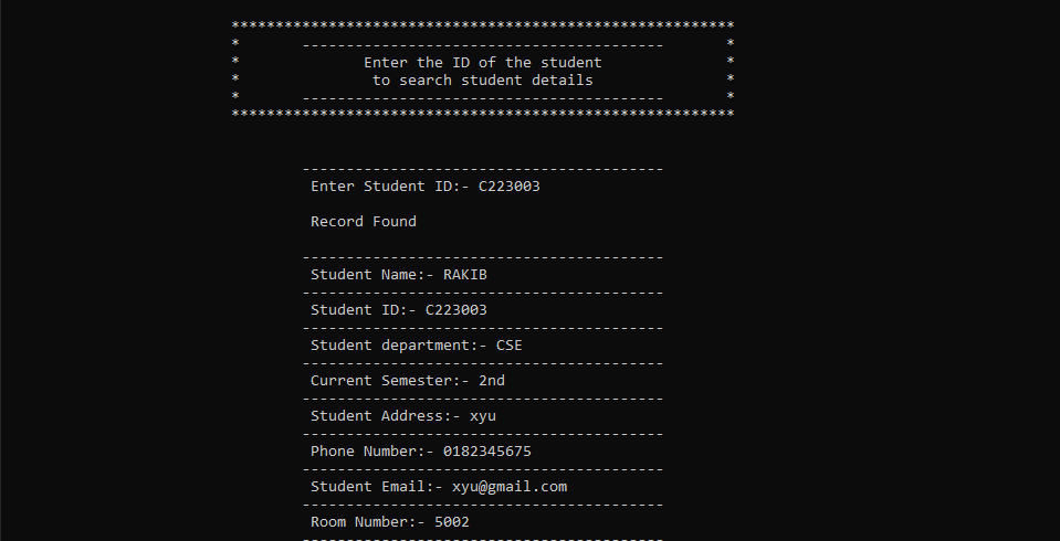 ◌ Shows Individual Student Record By Searching
