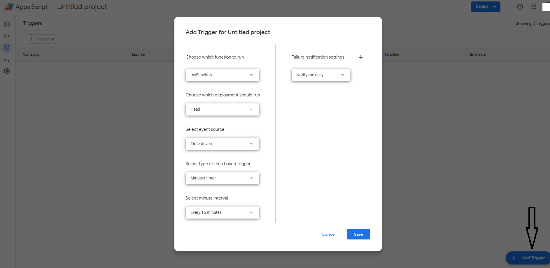At the bottom of the page, click "+ Add Trigger."