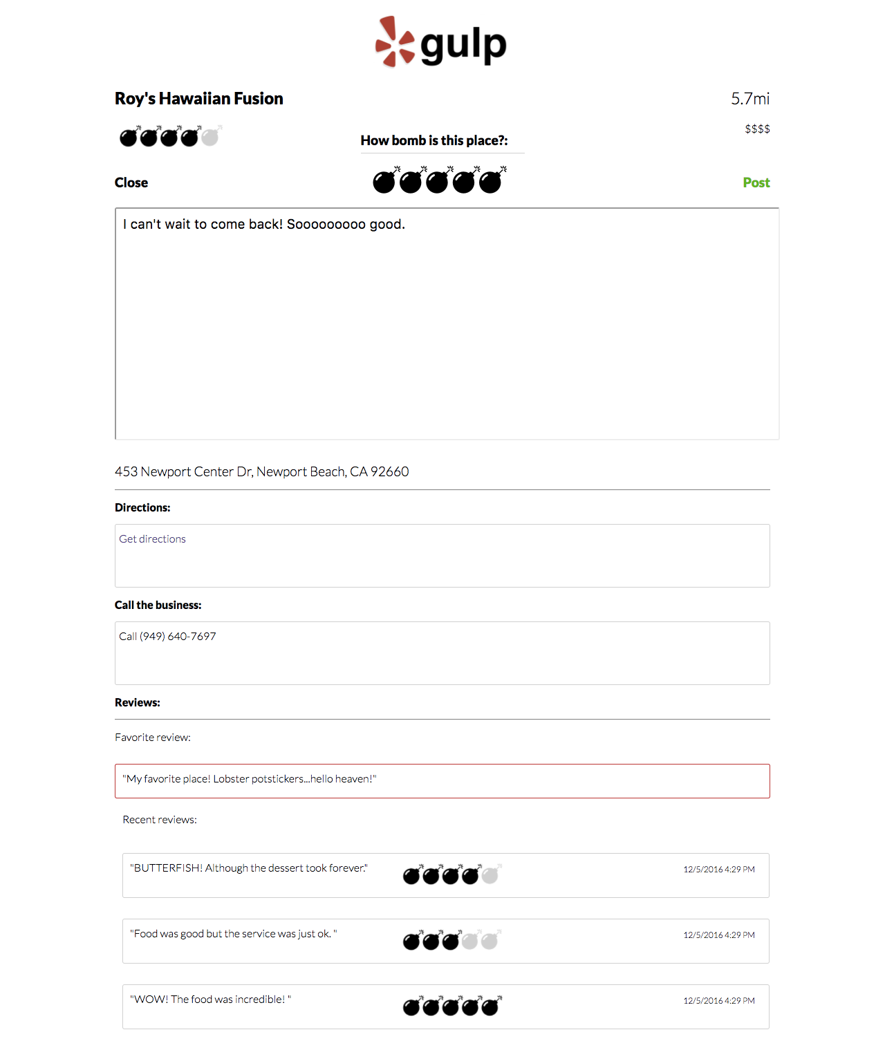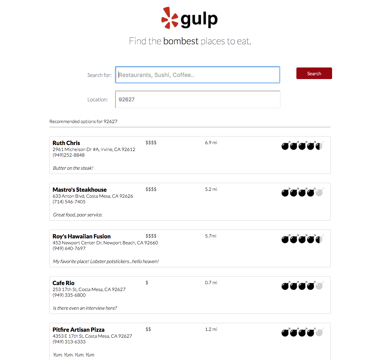 Front-end yelp clone for finding and rating 'bomb' restaurants.
