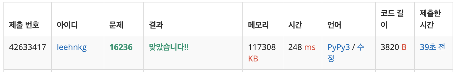 - 예전 풀이보다 메모리는 많이 쓰고 시간은 줄었다 (?)