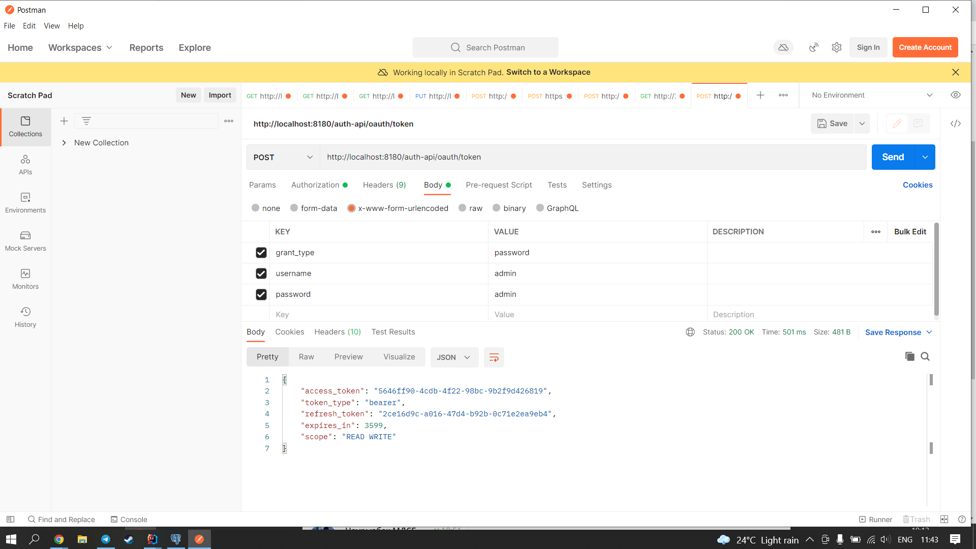AUTH : Get Access Token Now hit the POST method URL via postman to get the oauth2 token.