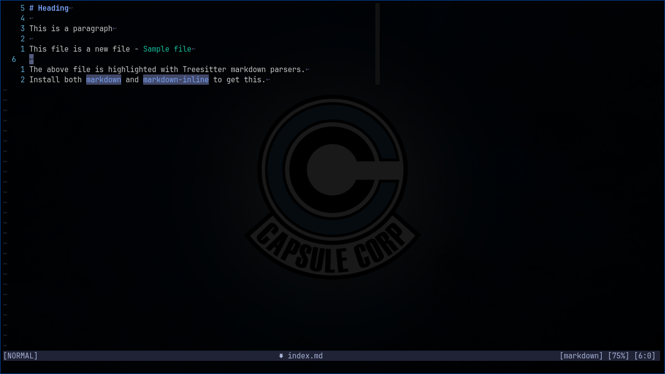 Syntax highlights included User can install Treesitter plugins markdown and markdown-inline if required