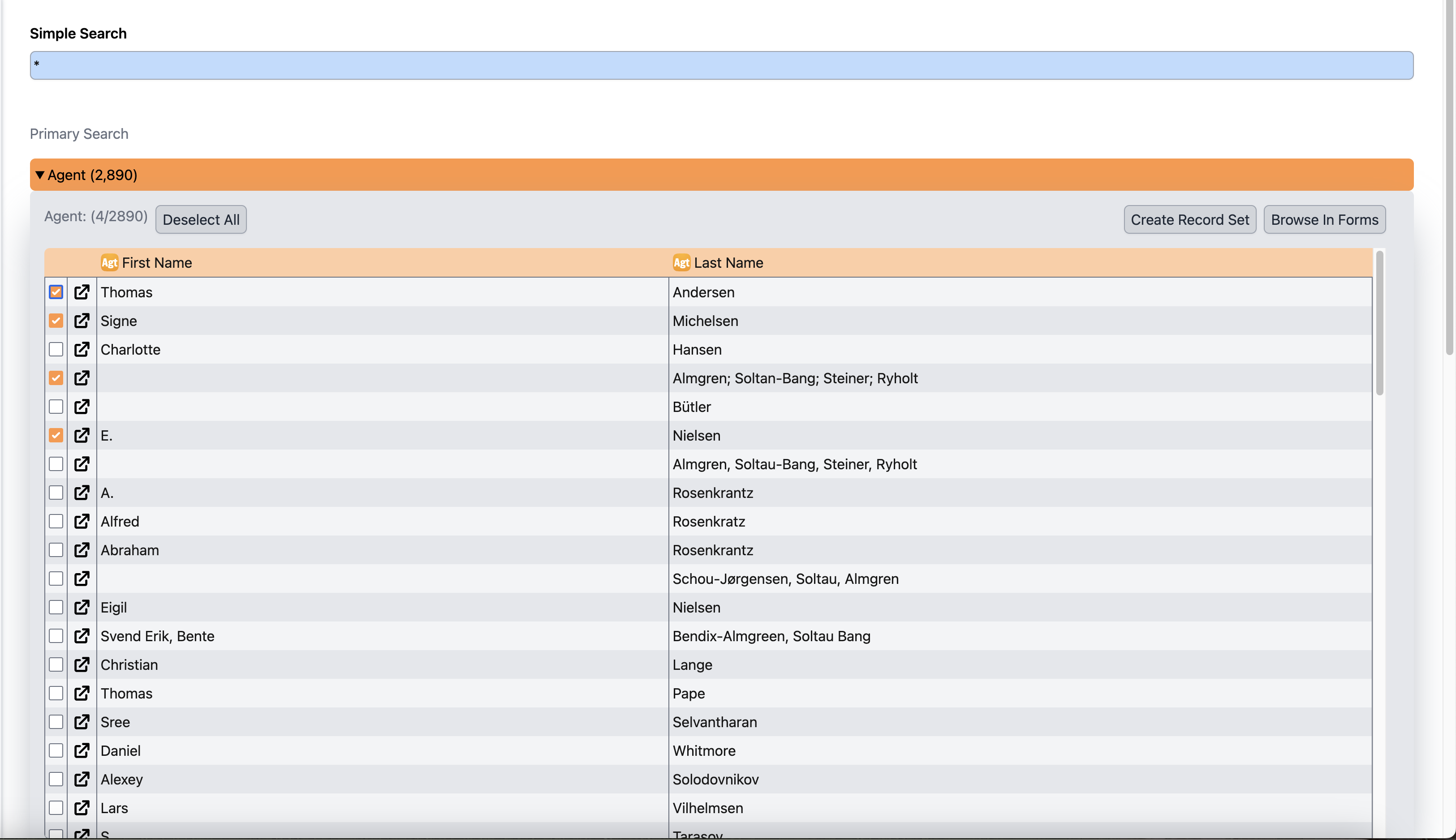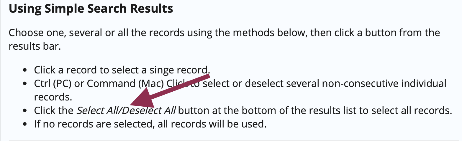 Something that might help is to auto-tick the results that appear on first load of the query results, this would make it easier for users to either click "deselect all" to select a few results, or manually remove any outliers. In addition it would help clarify the process - after our UAT a common comment was on how to select all results, even though the system treats the list as being fully selected until at least one row is ticked. With the addition of a permanent "select all" and "deselect all" perhaps this behaviour needs to be changed? I think it would be ok if the "select all" and "invert" only appeared for up to x rows for performance reasons, that should satisfy our users. |