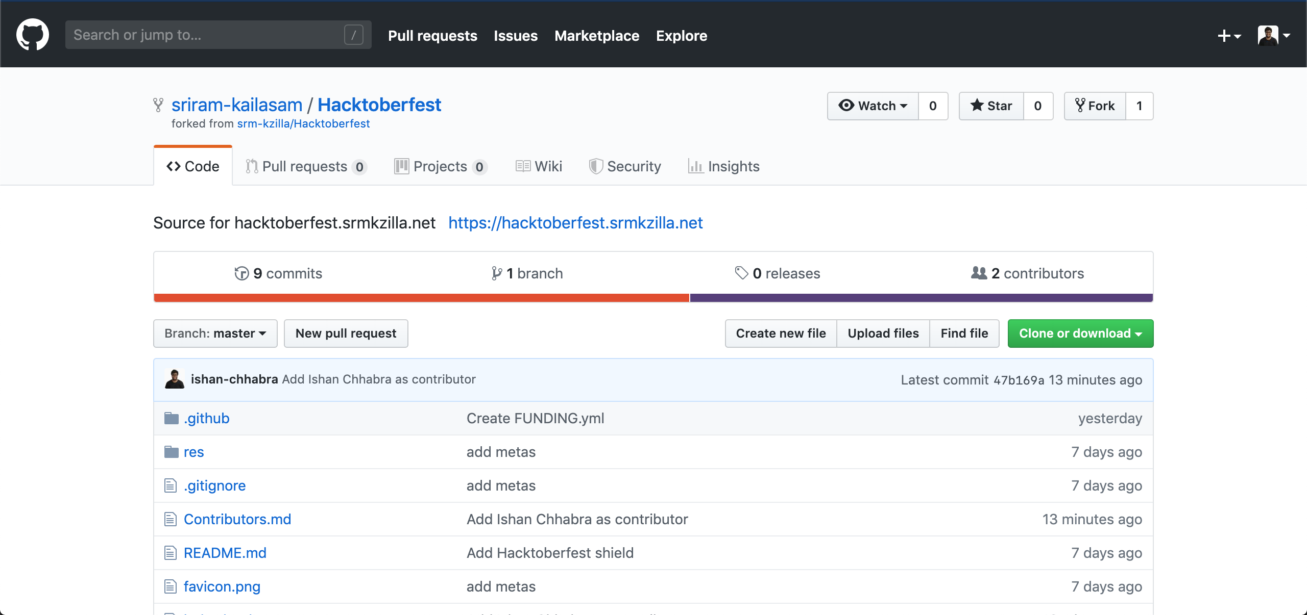 To make your first contribution, fork our Hacktoberfest repository. You will be able to see Hacktoberfest on your own repositories list after this step.