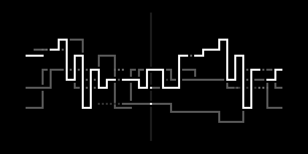 the Norns screen shows the paths of the four voices. x = time, y = pitch. dotted lines or gaps indicate a rest (closed gate).