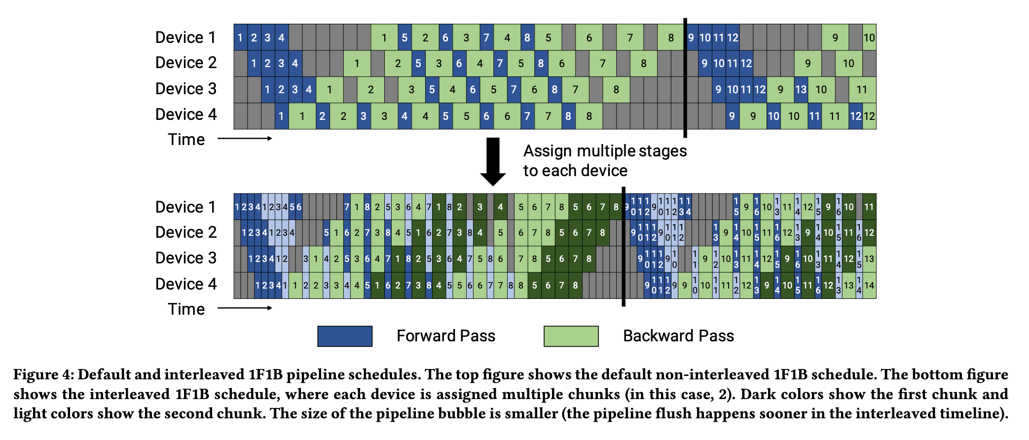 PipelineDriver1F1Bdriver class. A diagram illustrating the 1F1B schedule is below.