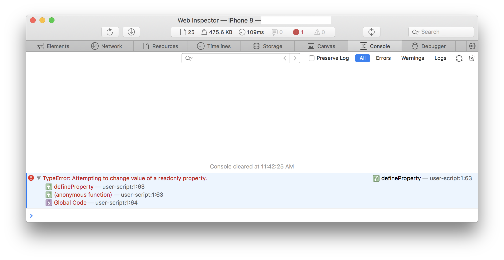 I am getting this error in the Safari console (run the app on a simulator, then Safari->Develop->{Your Device}->{Your Web Page}