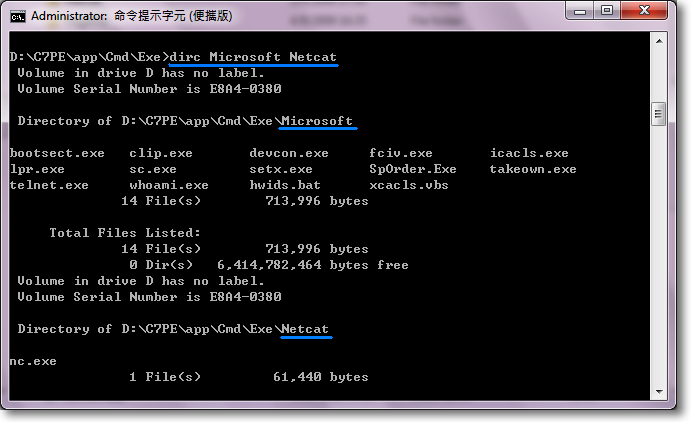 Alternatively, in dir /w style using Dirc.bat – dirc Microsoft Netcat