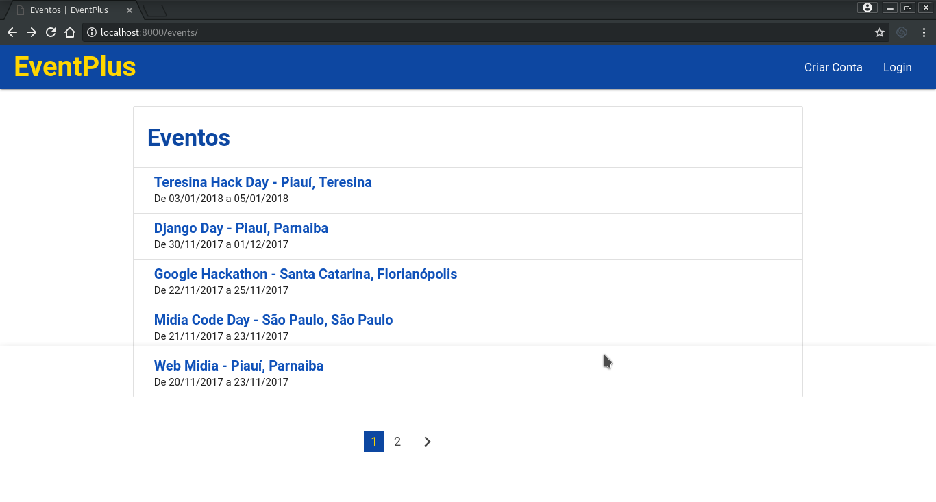 Plataforma de anuncio de eventos desenvolvida para submissão no processo de seleção de estágio da MidiaCode
