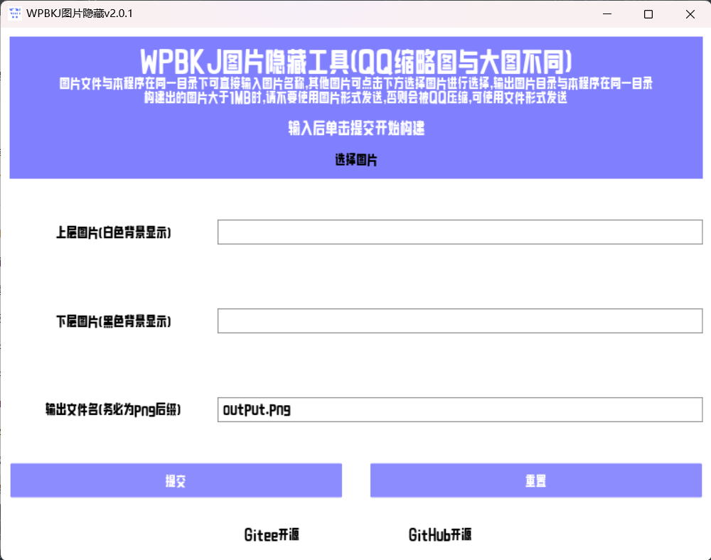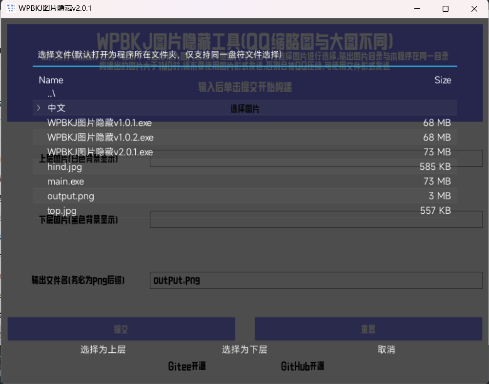 应注意:需要构建的上层图片和下层图片应与程序主体在同一文件夹,运行程序后手动输入文件名