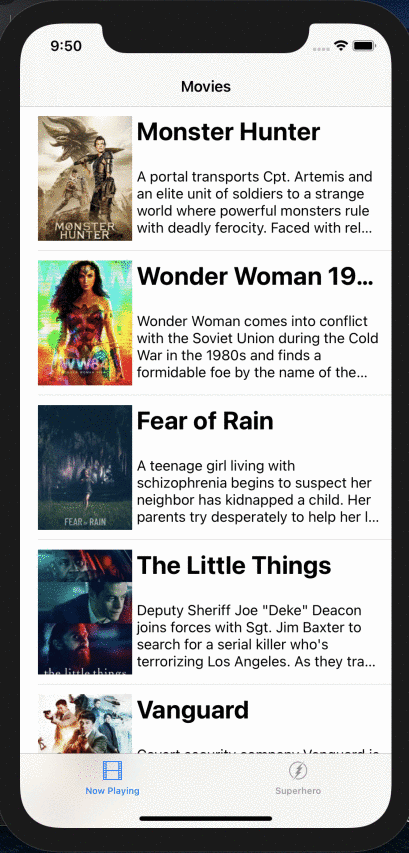 - (5pts) User can tap a cell to see more details about a particular movie.